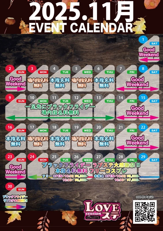 以前は日曜初回セット¥2,000オフ等のイベントをご用意していましたが、11月からは本指名、場内指名などの指名に特化してみましたよ☺️
